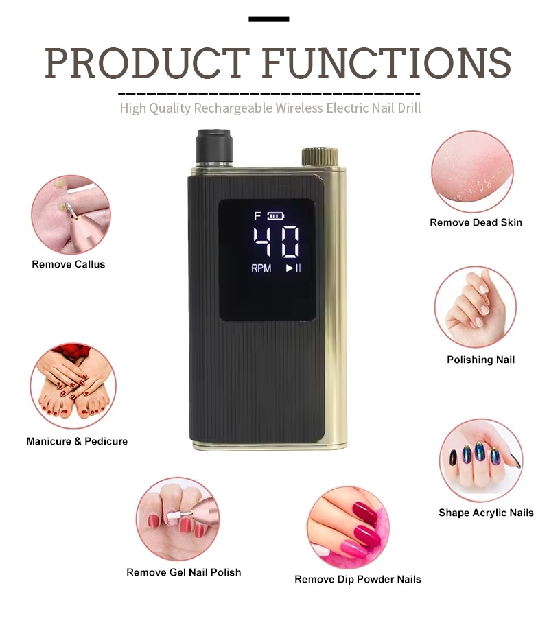 Ciri Dan Penggunaan Gerudi Kuku Profesional Berkelajuan Tinggi 40,000 RPM
