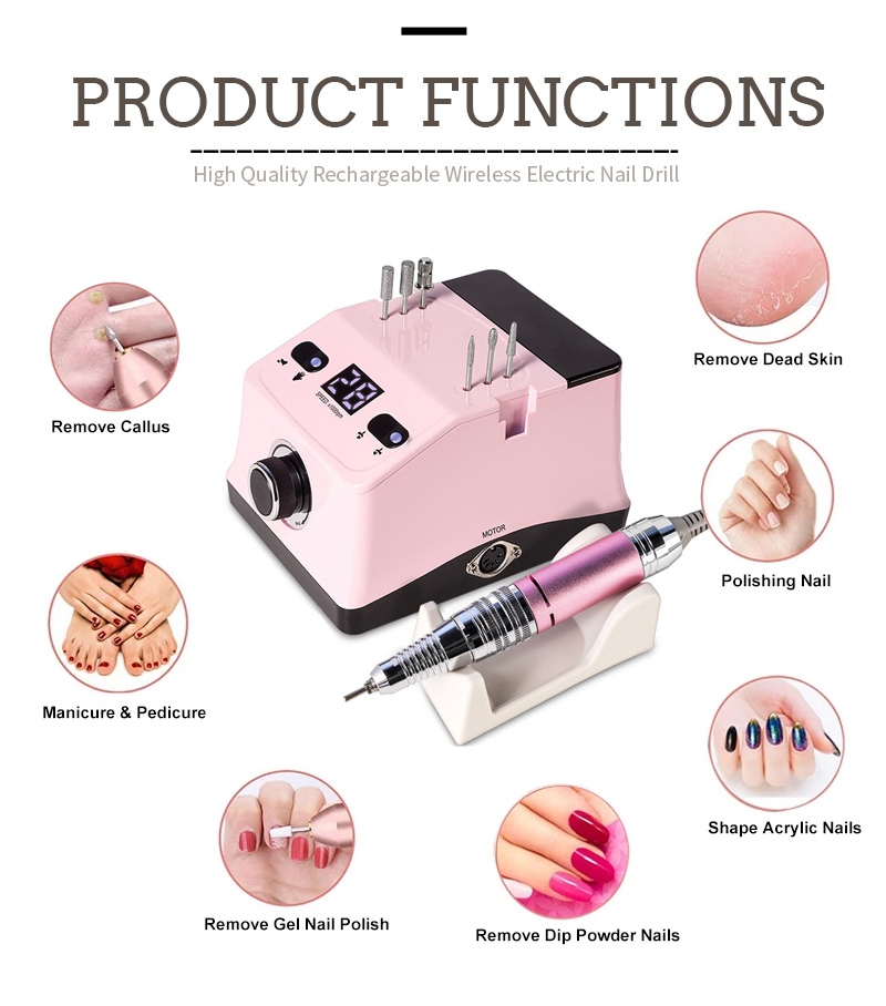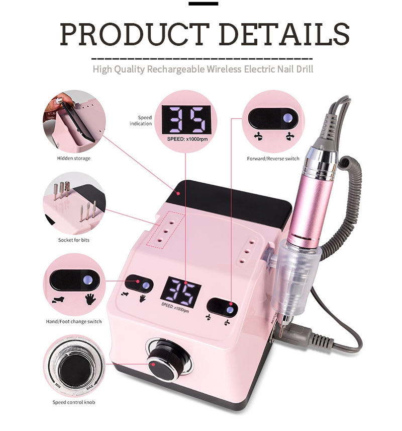 Kaedah operasi gerudi kuku pegang tangan dan pengilat penggantian gerudi ini, iaitu, palam dan tarik keluar, mudah dan senang, penggantian boleh digunakan selepas siap.