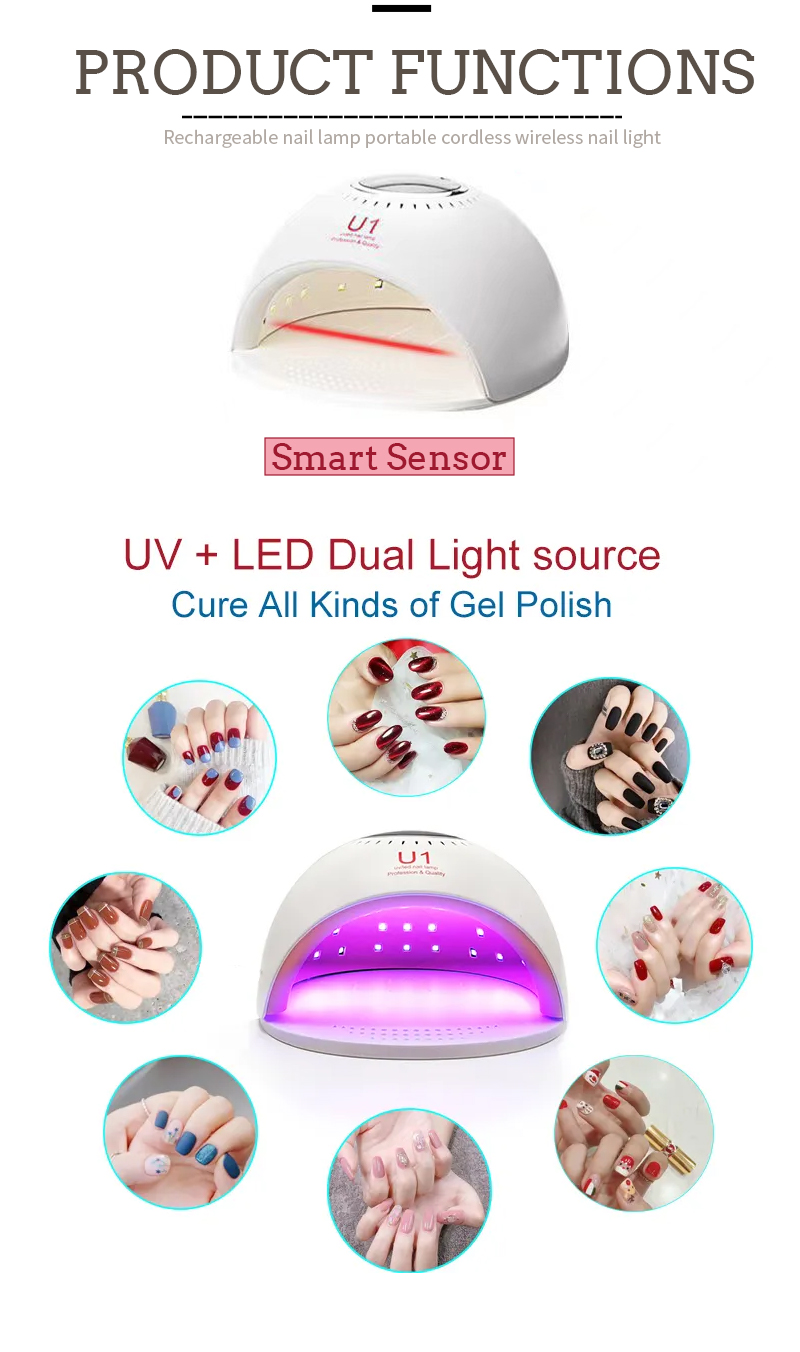 Produk memastikan pengeringan gam sekata tanpa pengecutan. Sumber cahaya dwinya memberikan pemanasan lembut untuk mengelakkan perubahan warna tangan dan ketegangan mata, sesuai untuk kedua-dua tangan dan kaki, memberikan hasil pengeringan yang sangat pantas.
