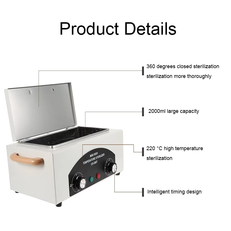 Sterilizer ini terutamanya menjana haba melalui cincin pemanasan, menggunakan suhu tinggi untuk pembasmian kuman.