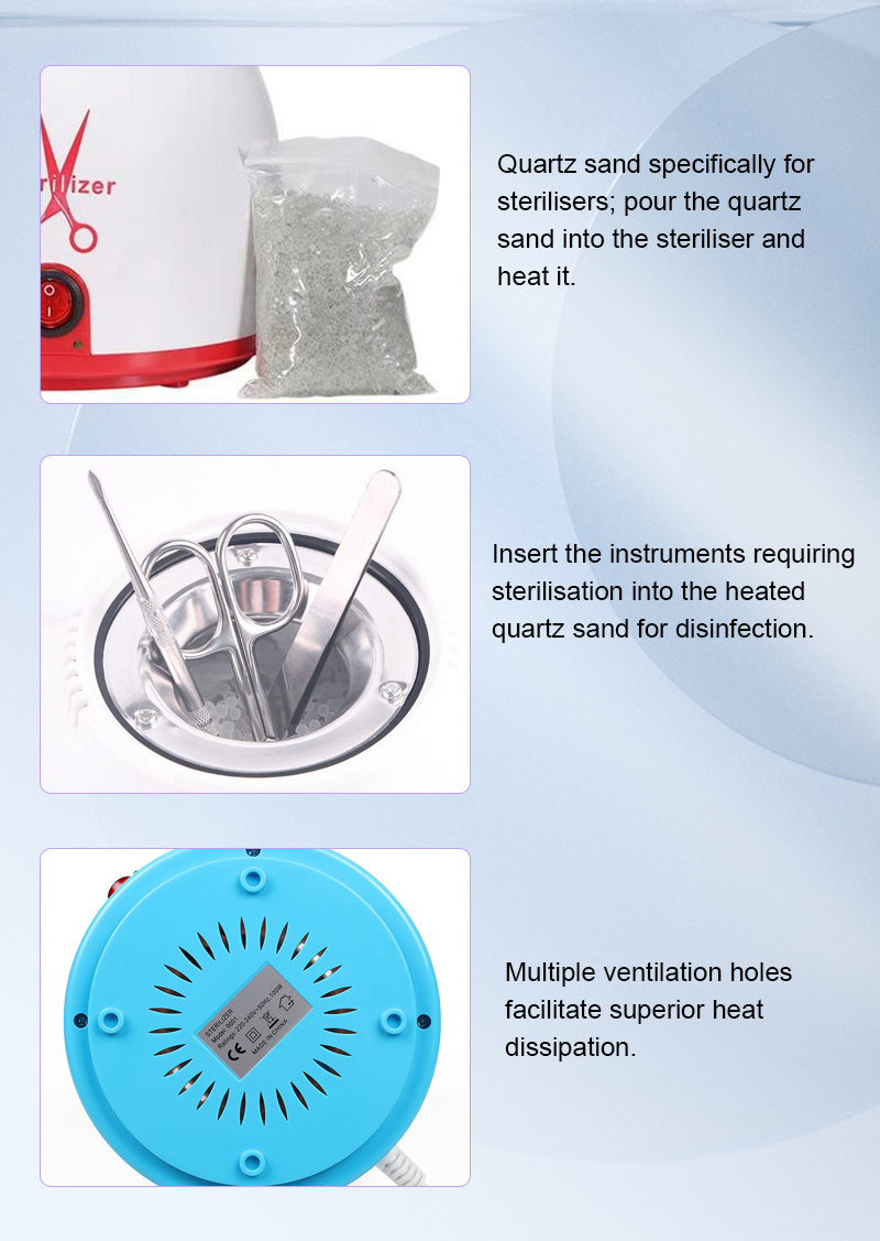 Sterilizer ini terutamanya menjana haba melalui cincin pemanasan, menggunakan suhu tinggi untuk pembasmian kuman.
