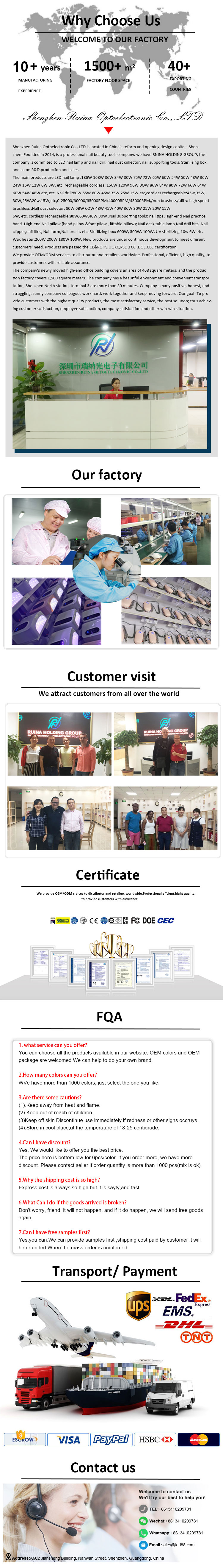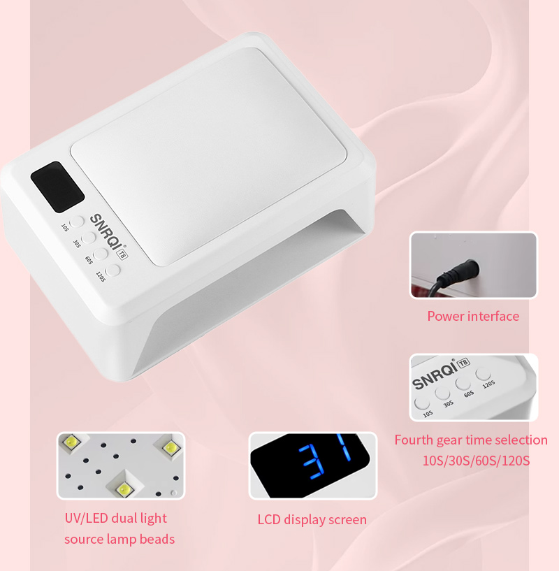 Produk memastikan pengeringan gam sekata tanpa pengecutan. Sumber cahaya dwinya memberikan pemanasan lembut untuk mengelakkan perubahan warna tangan dan ketegangan mata, sesuai untuk kedua-dua tangan dan kaki, memberikan hasil pengeringan yang sangat pantas.