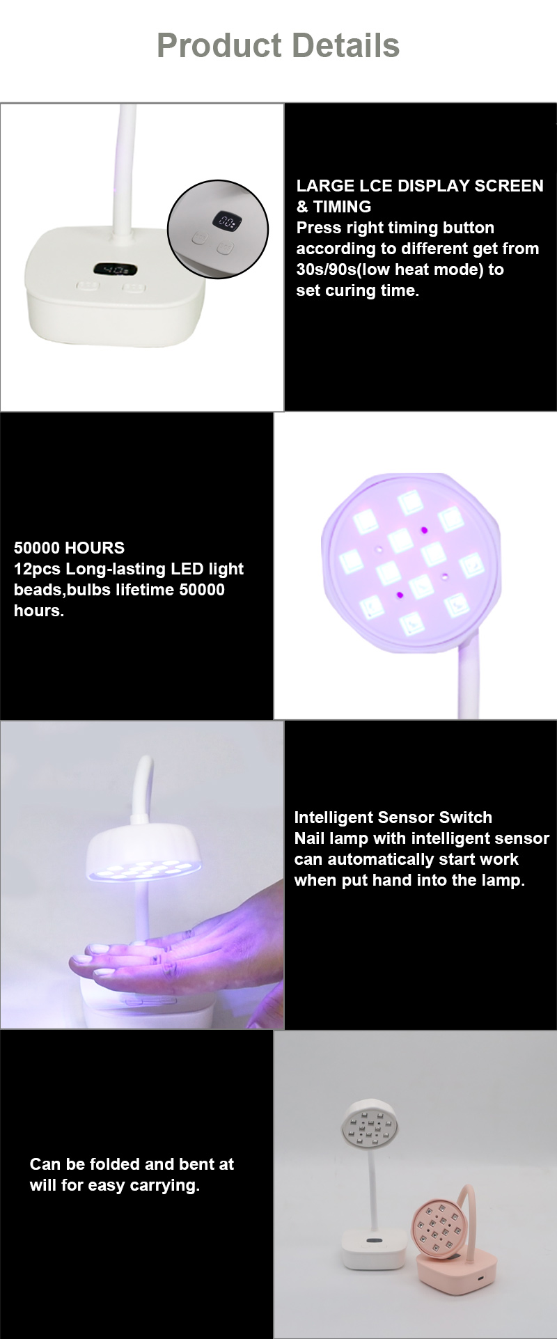 Produk ini memastikan pengeringan gam tanpa pengecutan. Sumber cahaya dwi memberikan pemanasan lembut untuk mencegah perubahan warna dan ketegangan mata, sesuai untuk kedua -dua tangan dan kaki, memberikan hasil pengeringan yang sangat cepat.