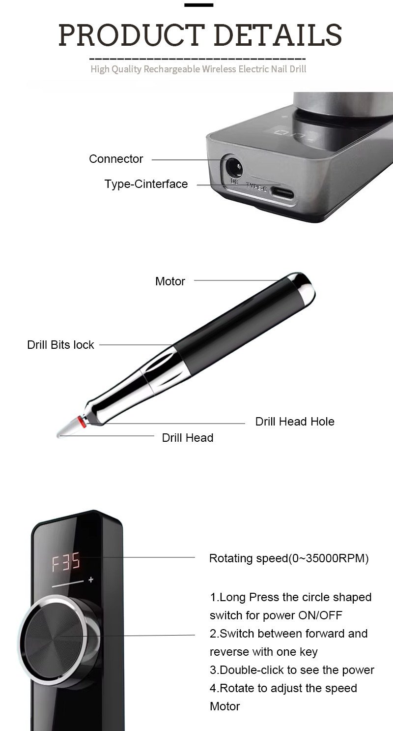 Ciri-ciri Produk dan Aplikasi Model 109 Fail Kuku Elektrik 35,000 Rpm Berkelajuan Tinggi Untuk Penyingkiran Poland