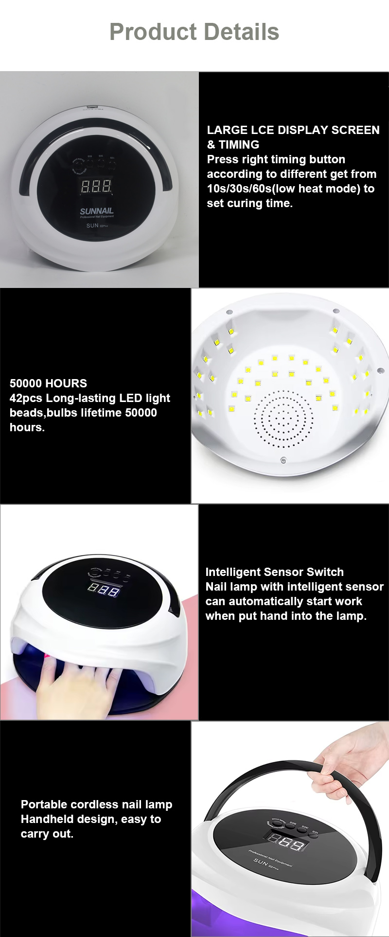 • Mentol LED berkuasa tinggi untuk pengawetan gel 10 saat yang cepat