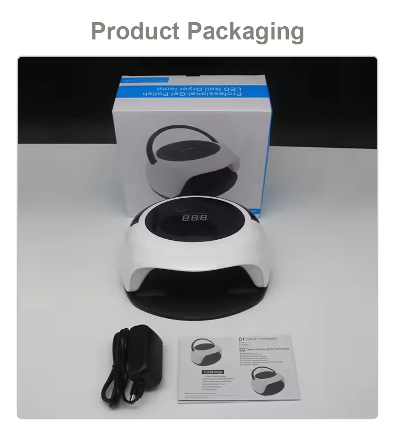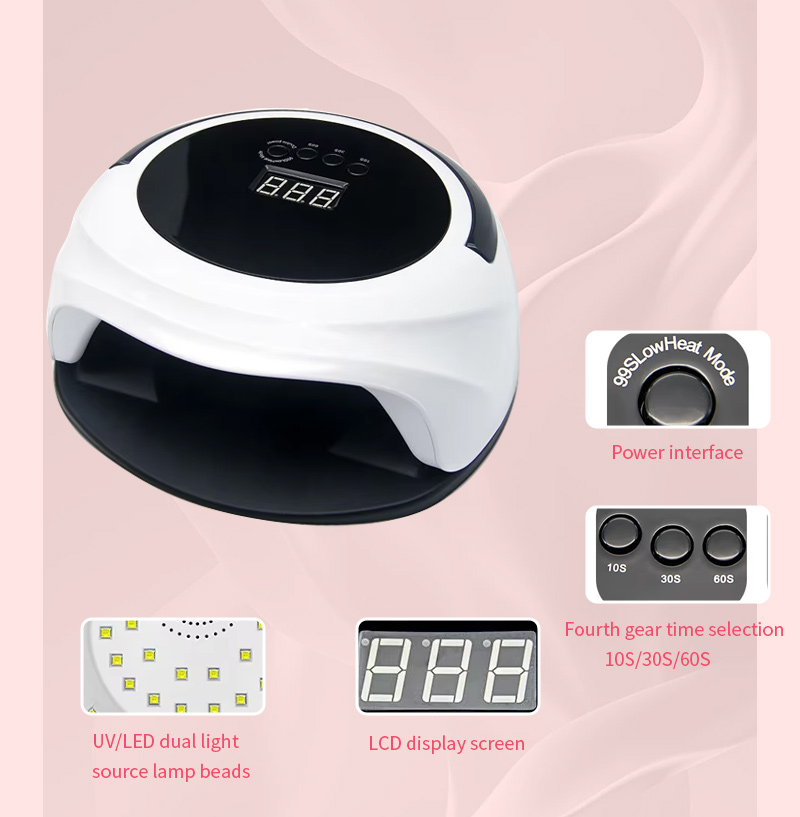Lampu pengeringan kuku dengan fungsi sensor automatik memastikan pengeringan gam sekata tanpa pengecutan. Sumber cahaya dwinya memberikan pemanasan lembut untuk mengelakkan perubahan warna tangan dan ketegangan mata, sesuai untuk kedua-dua tangan dan kaki, memberikan hasil pengeringan yang sangat pantas.