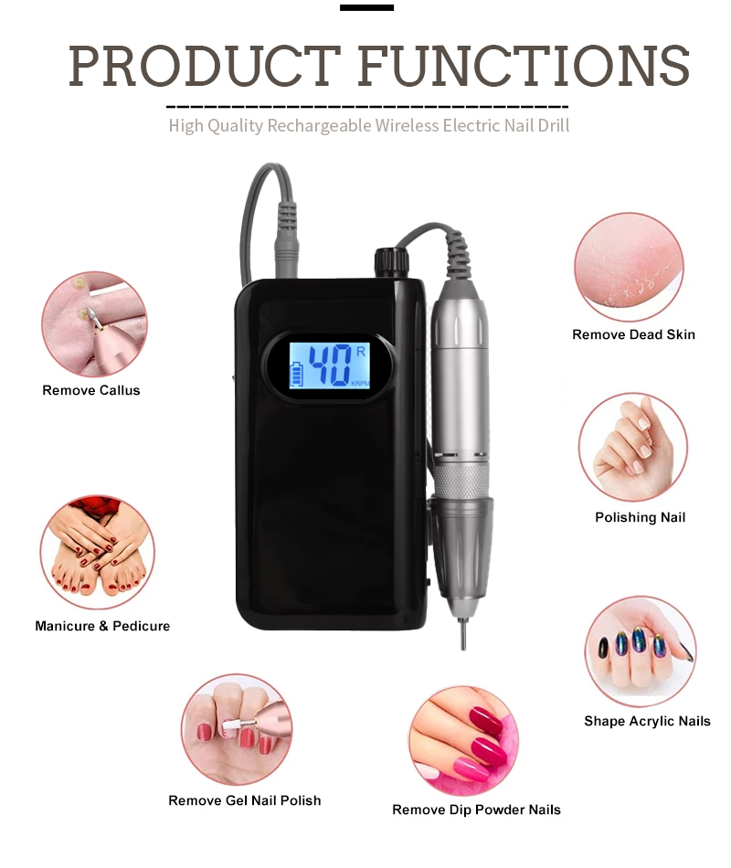 Ciri-ciri Produk dan Aplikasi K91 Kelajuan Tinggi 40,000 RPM Fail Kuku Elektrik Untuk Penghapusan Penggilap Kuku