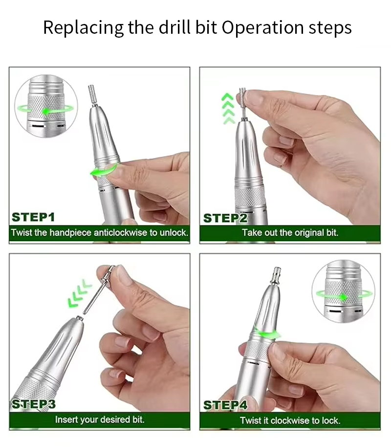 2. Pemegang logam berkelajuan tinggi, badan aloi aluminium penuh, memastikan operasi yang lancar, tenang dan jangka hayat lanjutan.