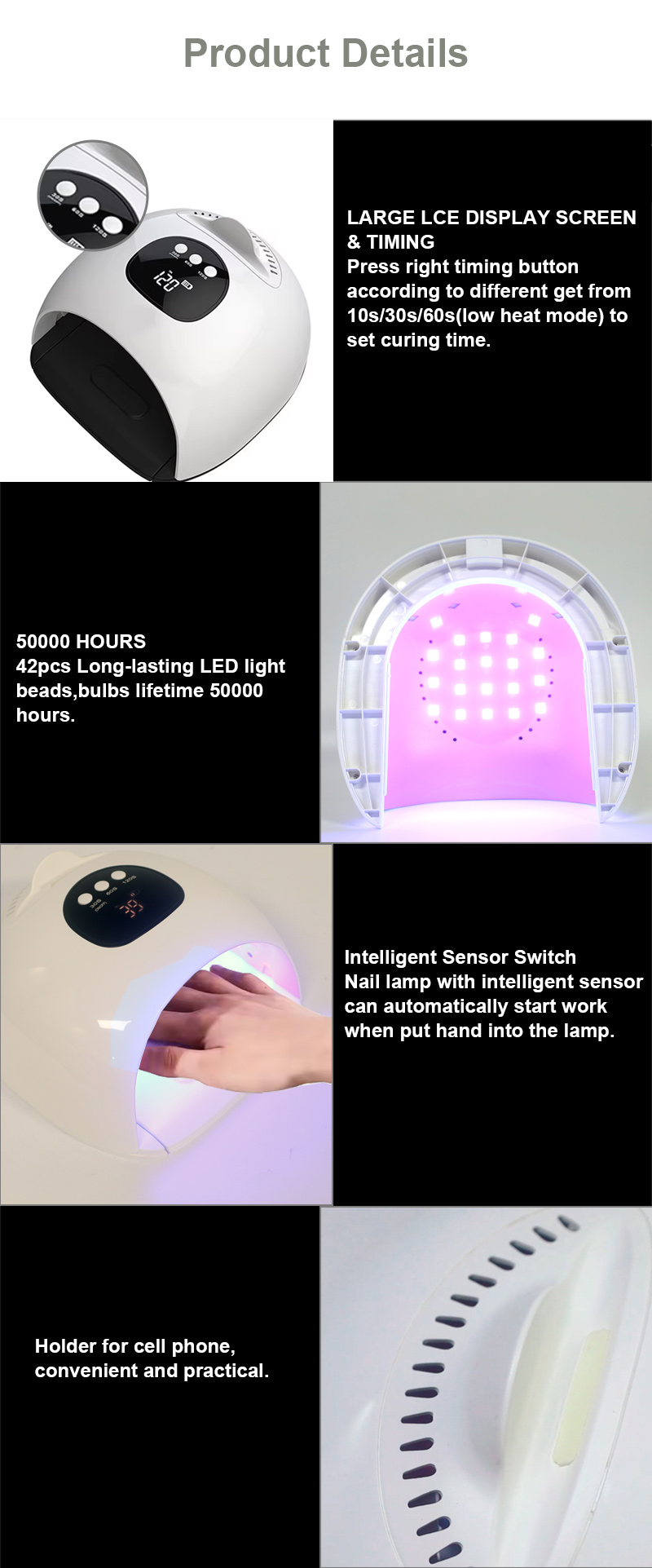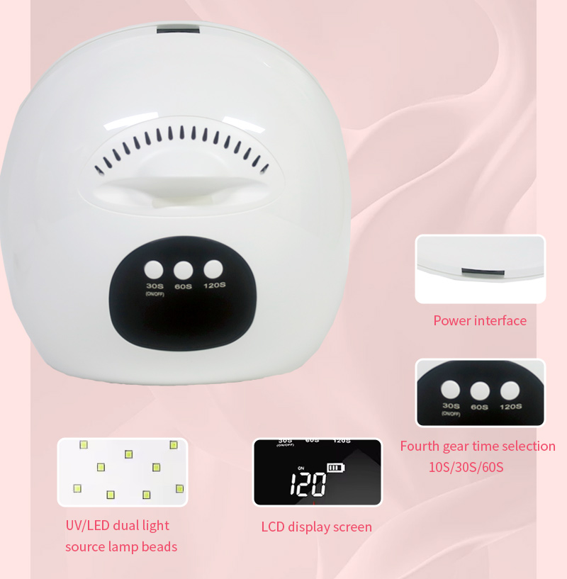 Produk ini memastikan pengeringan gam tanpa pengecutan. Sumber cahaya dwi memberikan pemanasan lembut untuk mencegah perubahan warna dan ketegangan mata, sesuai untuk kedua -dua tangan dan kaki, memberikan hasil pengeringan yang sangat cepat.
