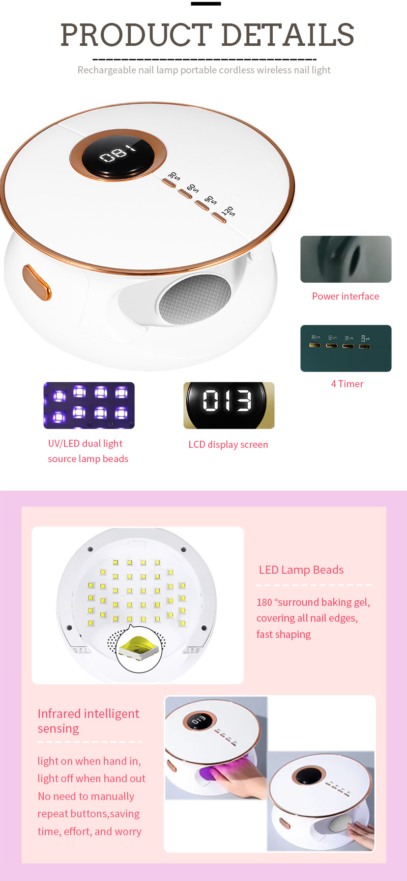 • Mentol LED Kuasa Tinggi yang kuat, gel pengawetan cepat dalam 10 -an