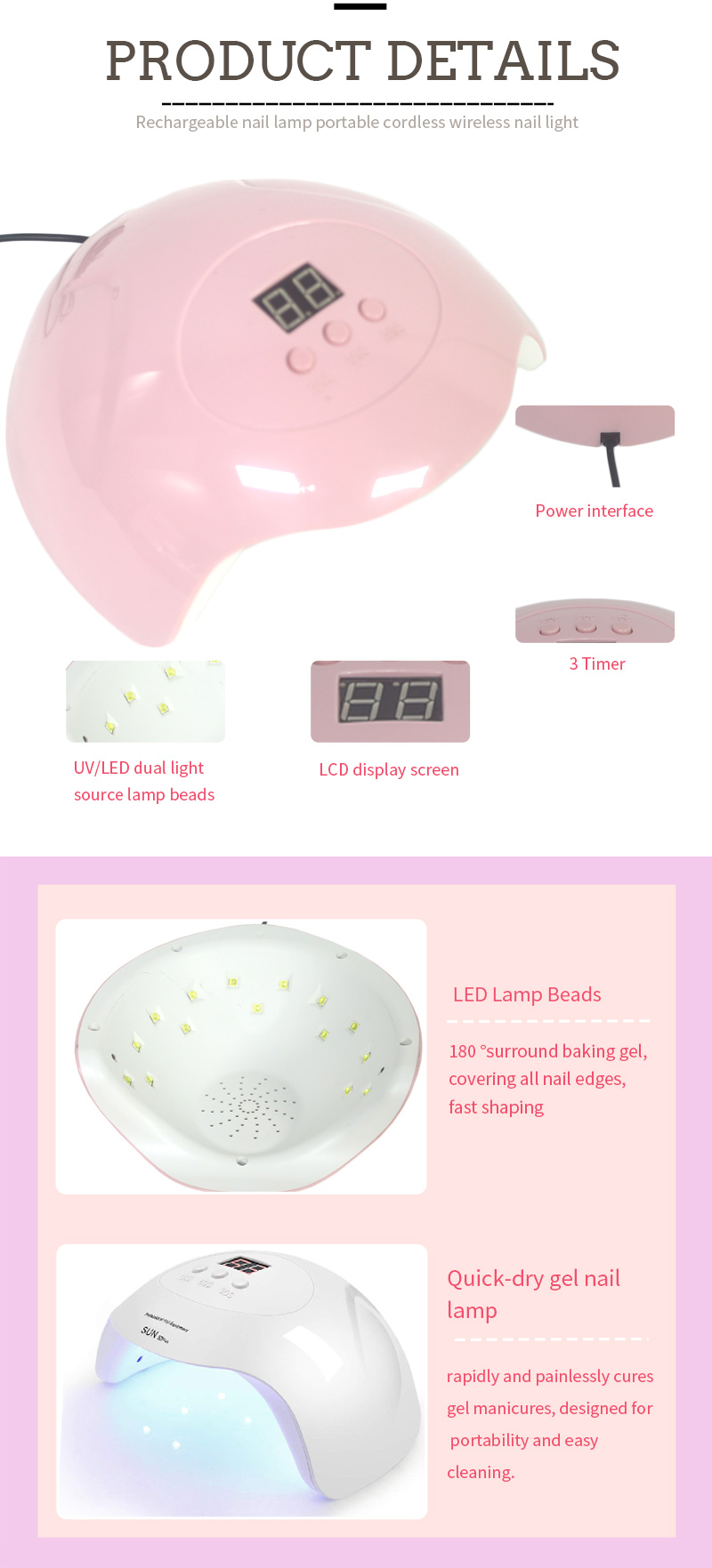 Lampu LED Pengering Kuku Boleh Dicas semula 86w Protable