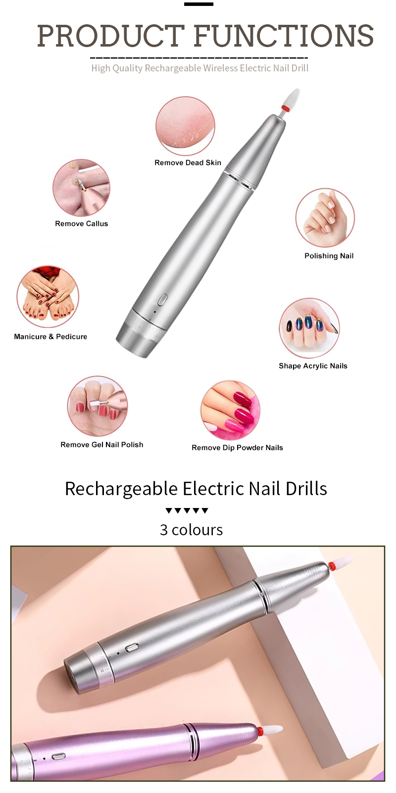 Ciri-ciri Produk dan Aplikasi Fail Kuku Elektrik 20,000 RPM Berkelajuan Tinggi UV-1001 untuk Penyingkiran Poland Kuku