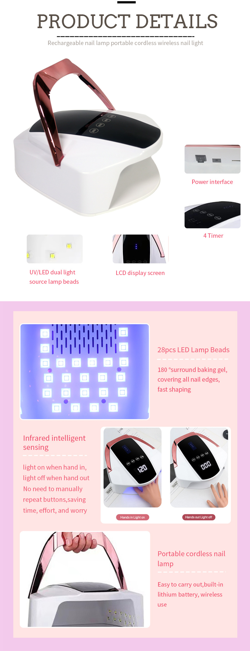 Lampu LED Pengering Kuku Boleh Dicas semula 86w Protable