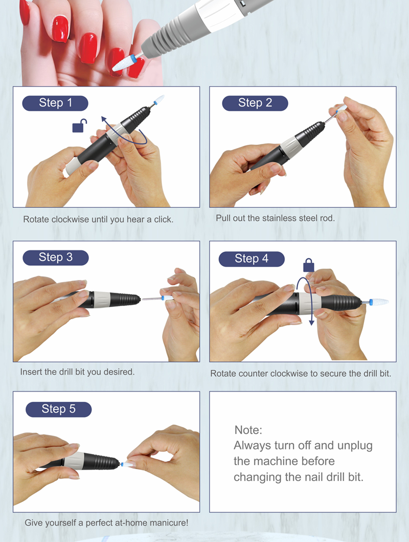 Set Gerudi Kuku Mudah Alih Elektrik Dengan Motor Kuat 65w 35000rpm