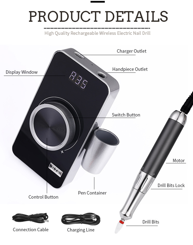 Set Gerudi Kuku Boleh Dicas semula Gerudi Kuku Di Jari Kaki 35w 35000rpm