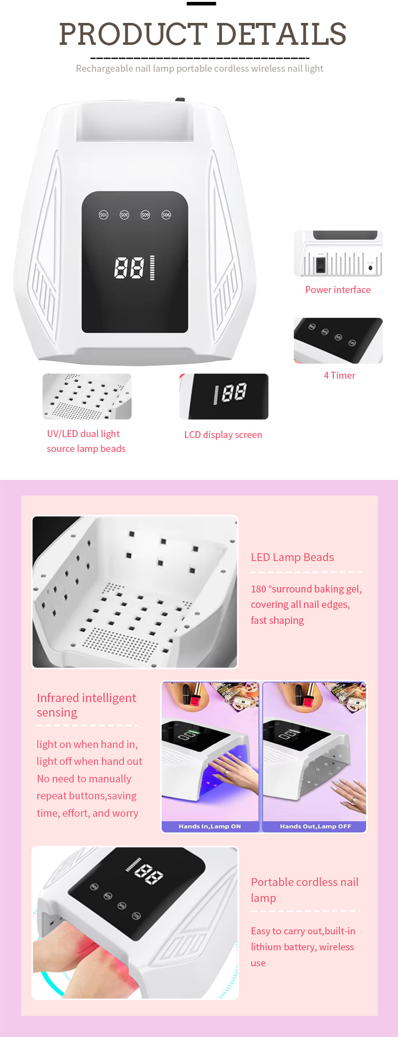 Lampu LED Pengering Kuku Boleh Dicas semula 86w Protable