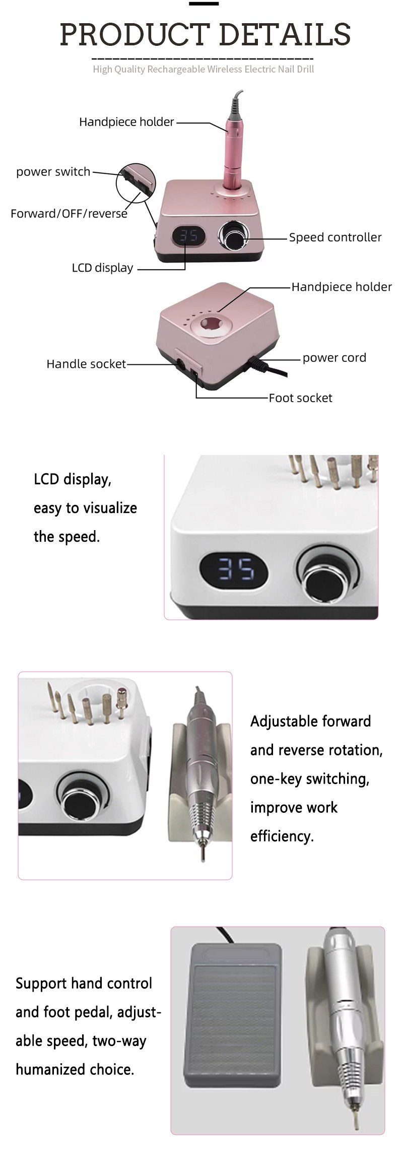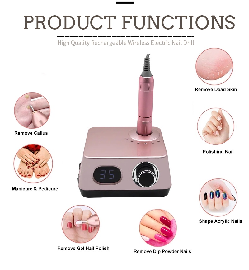 1. Apakah perkhidmatan yang anda tawarkan tentang gerudi kuku elektrik tanpa wayar ini dengan 35,000 rpm?