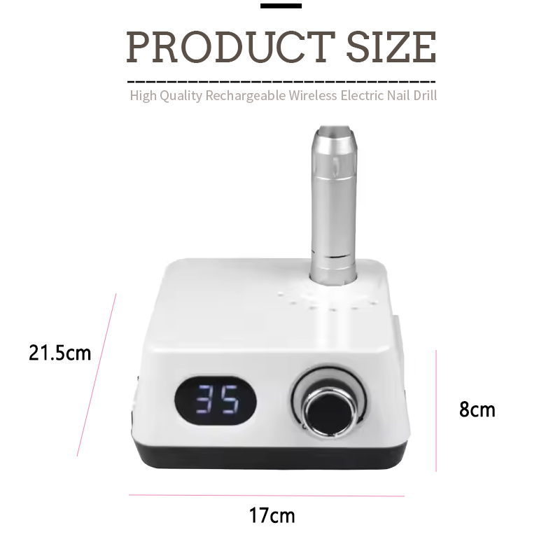Gerudi kuku elektrik tanpa wayar dengan 35,000 rpm ini mempunyai 2 warna untuk dipilih, warna hitam/putih/kelabu/biru/merah/merah jambu/oren, berwarna-warni.